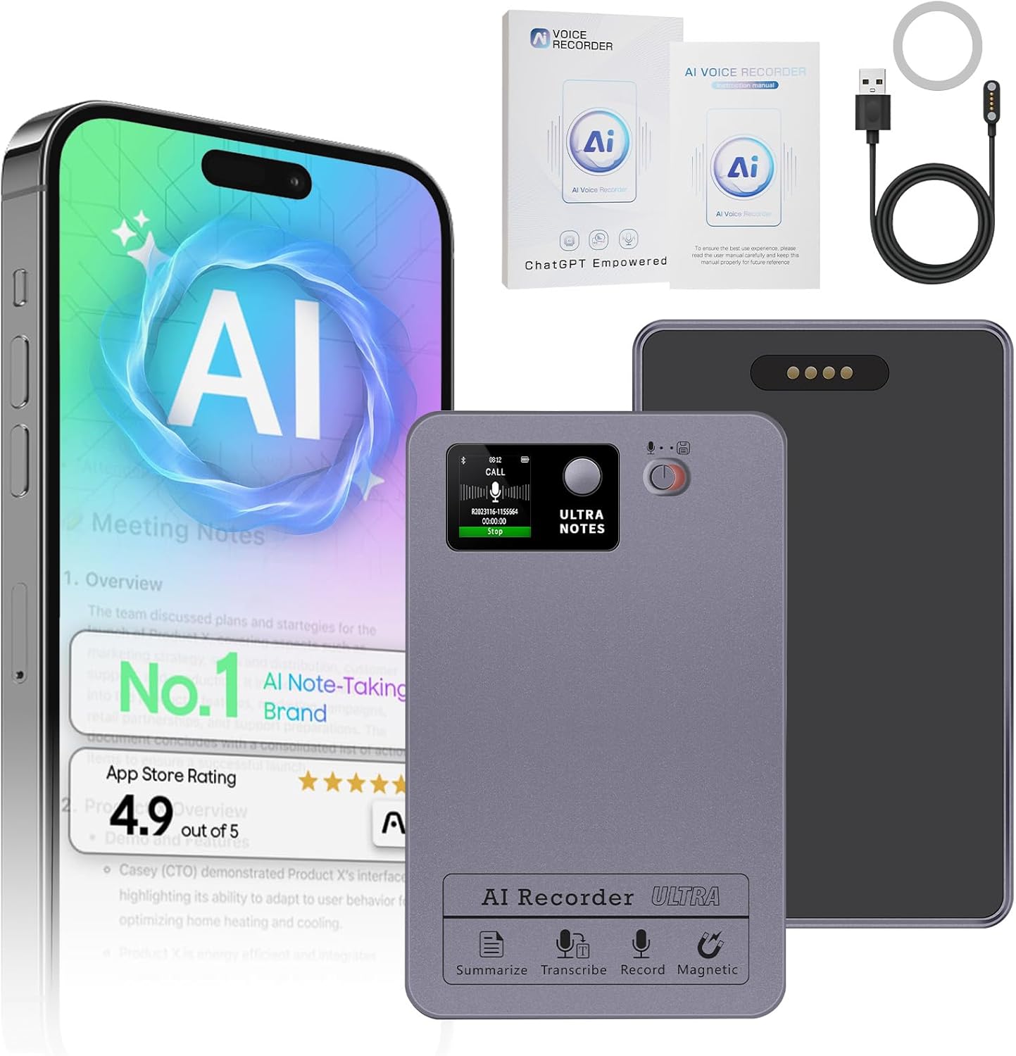 AI Voice Recorder, ToyGem 64G Dictaphone for Lectures Meetings Calls
